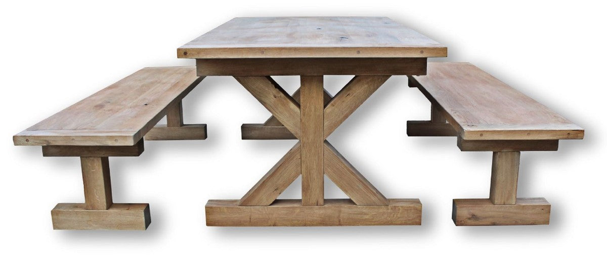 Massivholz Esszimmer Set Naturfarben - Eichenholz Esstisch mit 2 Sitzbänken - Esszimmmer Möbel - Restaurant Möbel - Rustikale Eichenholz Möbel