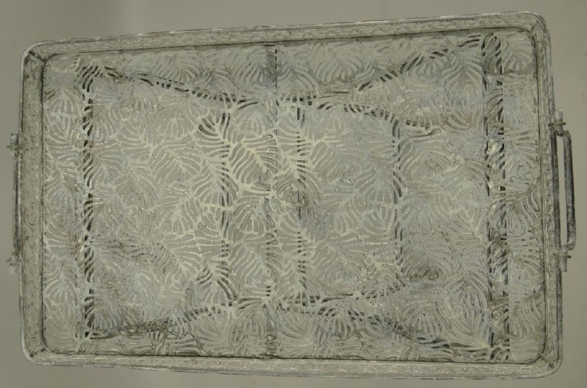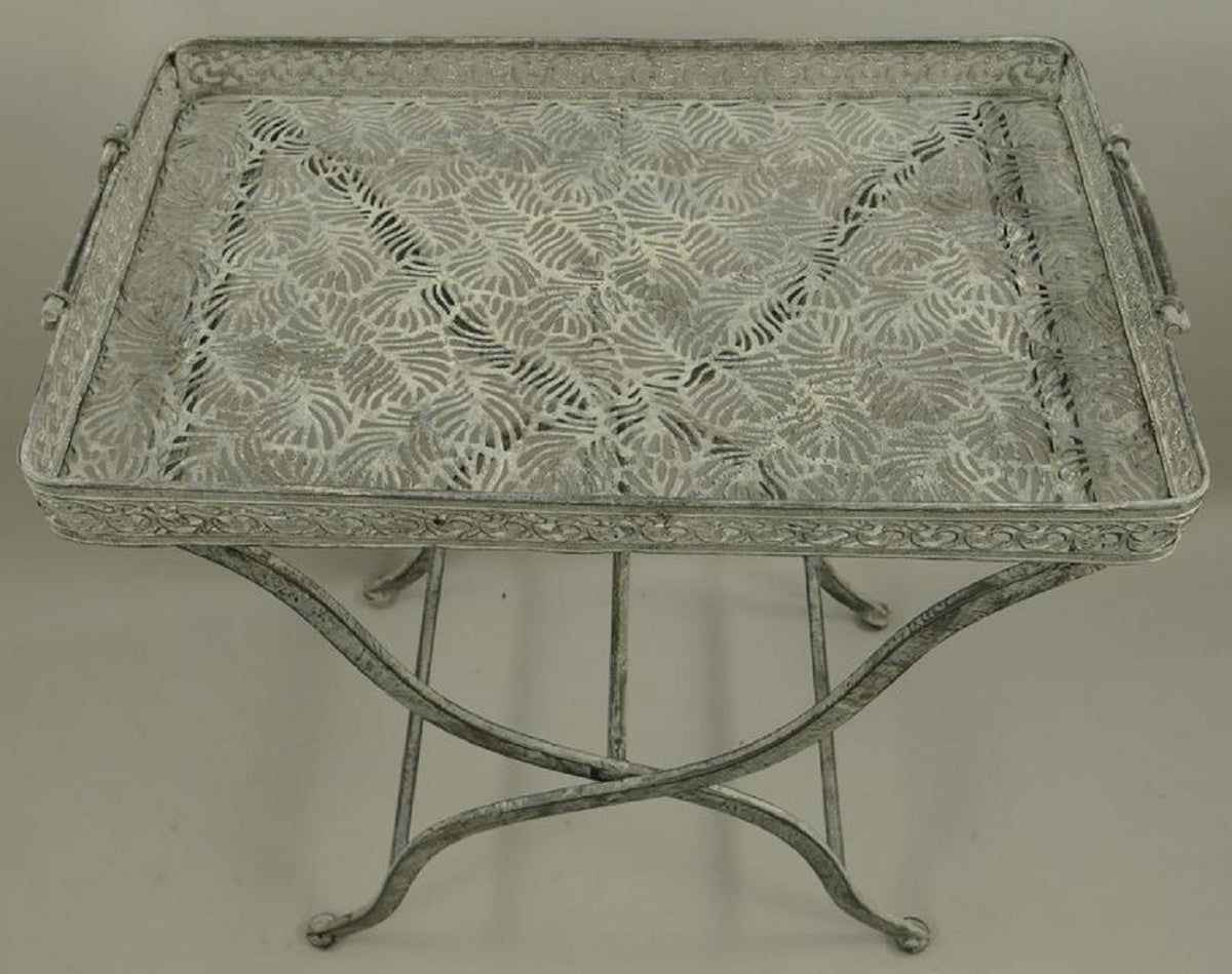 Jugendstil Gartentisch Antik Grau 60 x 40 x H. 70 cm - Klappbarer Metall Tisch mit Tragegriffen - Garten & Terassen Möbel