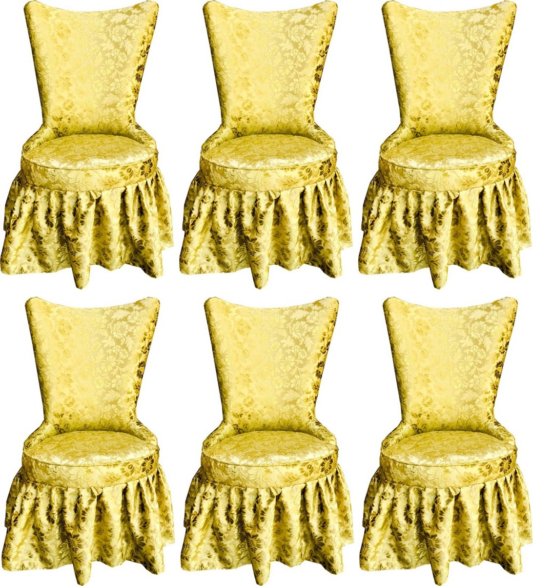 Pompöös by Luxus Barock Schloss Esszimmerstühle Gold Bouquet Muster / Gold - Pompööse Barock Stühle designed by Harald Glööckler - 6 Esszimmerstühle - Barock Möbel