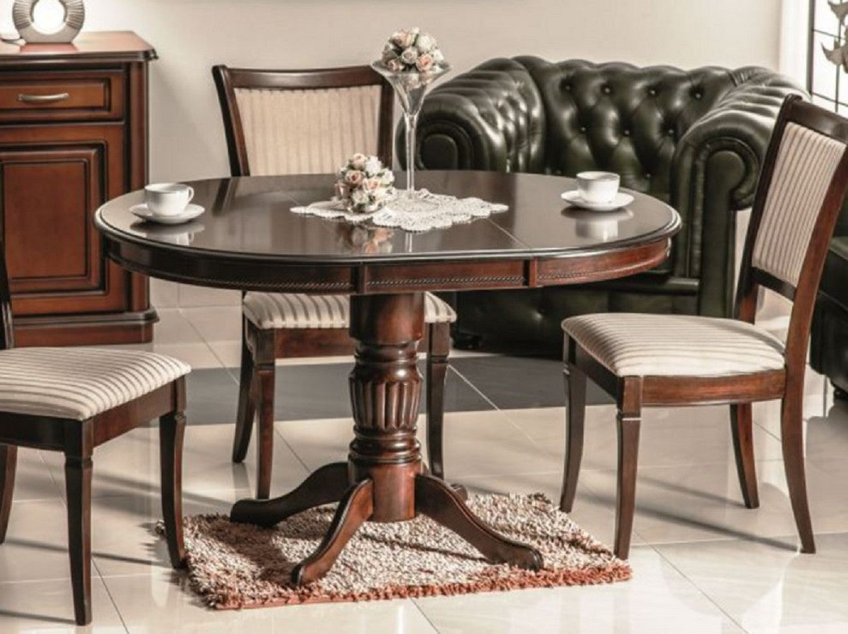 Jugendstil Esstisch Dunkelbraun 90-125 x 90 x H. 75 cm - Runder ausziehbarer Massivholz Küchentisch - Esszimmer Möbel