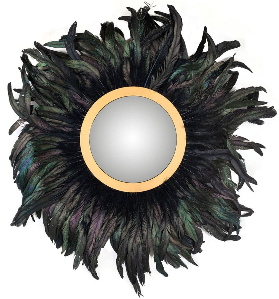 Designer Spiegel Mehrfarbig / Gold Ø 75 cm - Runder Wandspiegel mit Federn - Wohnzimmer Spiegel - Garderoben Spiegel - Designer Möbel