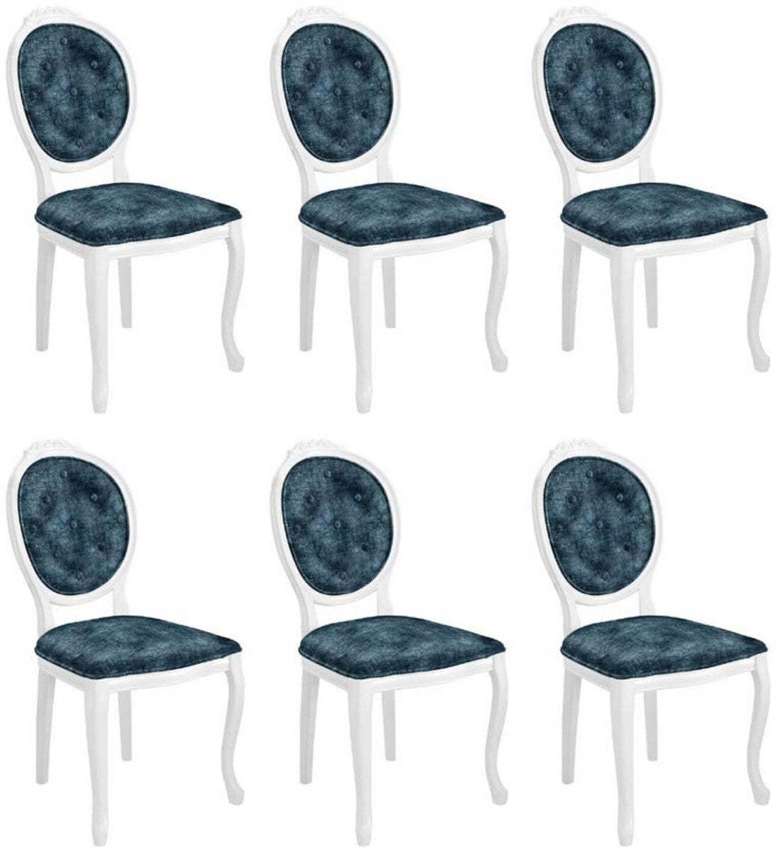 Barock Esszimmerstuhl Set Blau / Weiß - 6 Handgefertigte Küchen Stühle im Barockstil - Barock Esszimmer Möbel