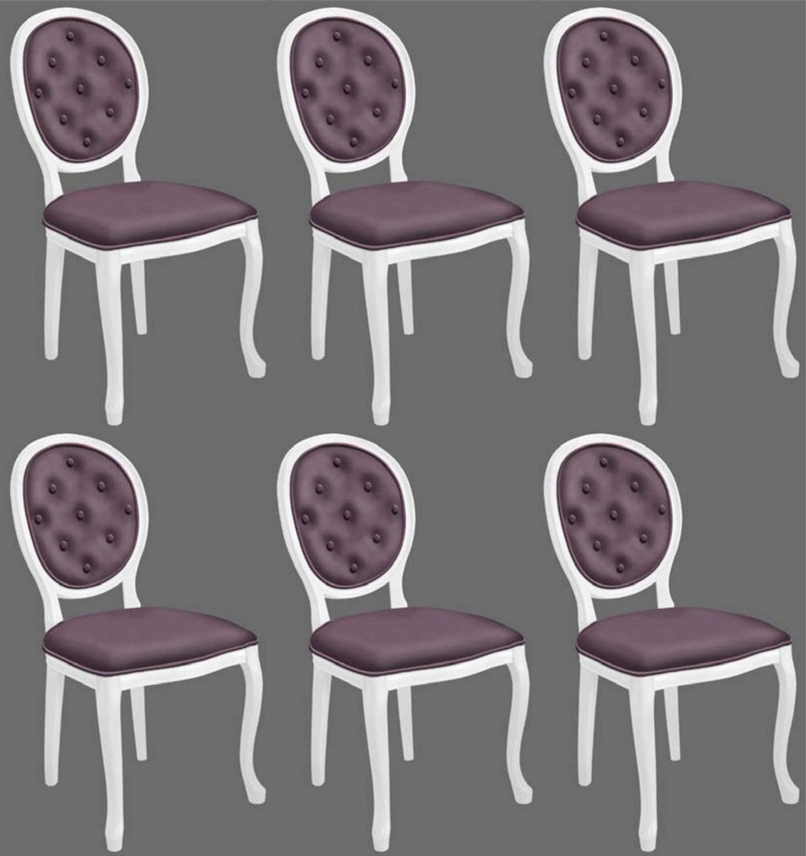 Barock Esszimmerstuhl Set Lila / Weiß - 6 Handgefertigte Küchen Stühle im Barockstil - Barock Esszimmer Möbel