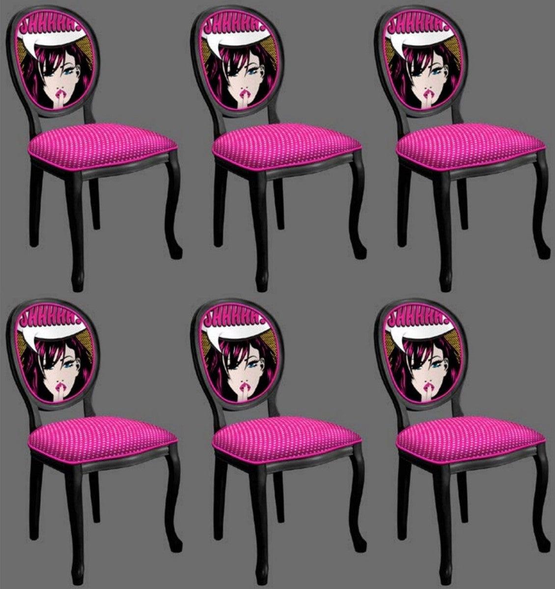 Barock Esszimmerstuhl Set Lila / Mehrfarbig / Schwarz - 6 Handgefertigte Küchen Stühle im Barockstil - Barock Esszimmer Möbel