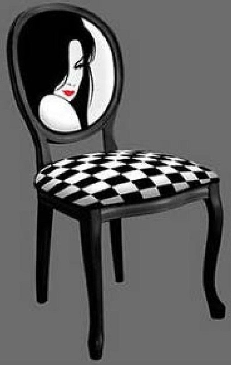 Barock Esszimmerstuhl Set Schwarz / Weiß / Rot - 6 Handgefertigte Küchen Stühle im Barockstil - Barock Esszimmer Möbel