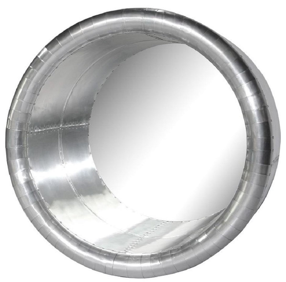 Vintage Aviator Spiegel Silber Ø 74 cm - Runder Aluminium Flugzeug Design Wandspiegel - Aluminium Flugzeug Möbel