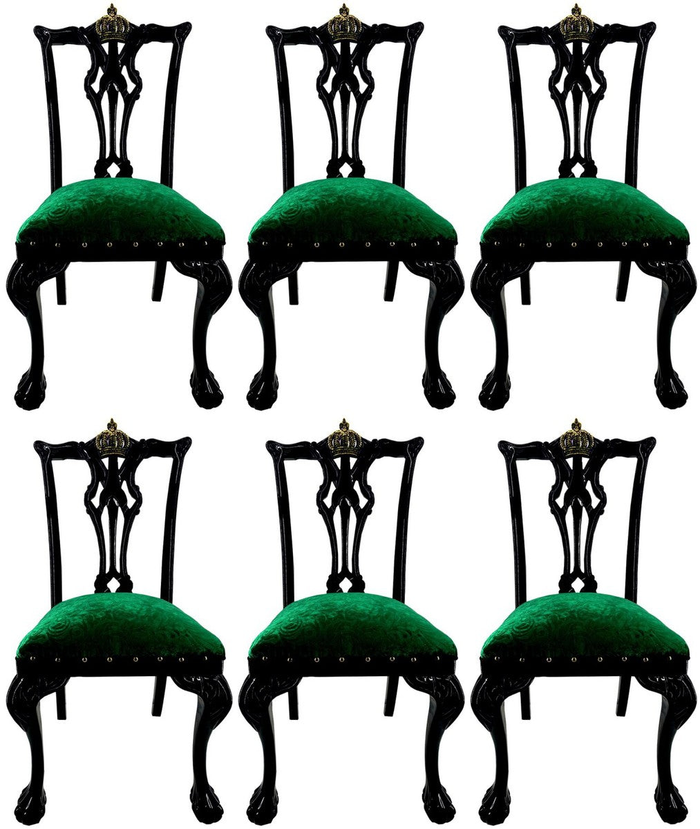 Pompöös by Luxus Barock Esszimmerstühle Grün Bouquet Muster / Schwarz / Gold - Pompööse Barock Stühle designed by Harald Glööckler - 6 Esszimmerstühle - Barock Esszimmer Möbel