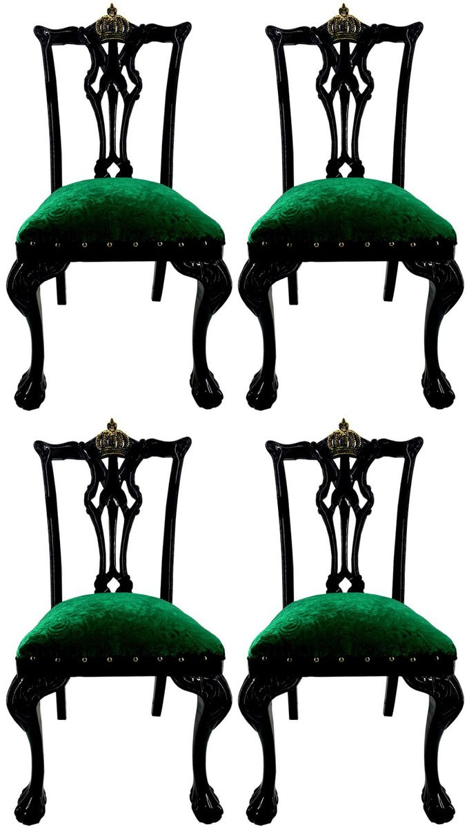 Pompöös by Luxus Barock Esszimmerstühle Grün Bouquet Muster / Schwarz / Gold - Pompööse Barock Stühle designed by Harald Glööckler - 4 Esszimmerstühle - Barock Esszimmer Möbel