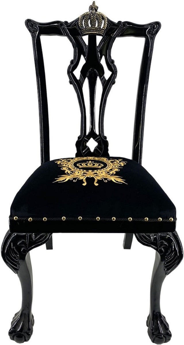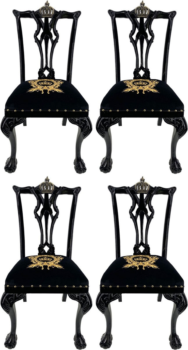 Pompöös by Luxus Barock Esszimmerstühle Schwarz / Gold - Pompööse Barock Stühle designed by Harald Glööckler - 4 Esszimmerstühle - Barock Esszimmer Möbel