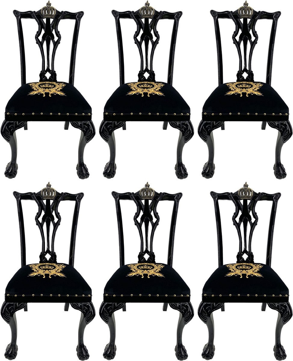 Pompöös by Luxus Barock Esszimmerstühle Schwarz / Gold - Pompööse Barock Stühle designed by Harald Glööckler - 6 Esszimmerstühle - Barock Esszimmer Möbel