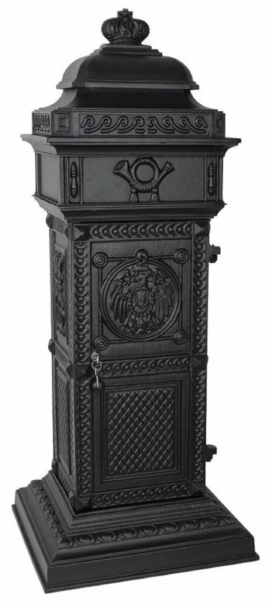 Jugendstil Standbriefkasten Schwarz 50 x 43 x H. 120 cm - Säulenbriefkasten im englischen Stil - Antik Stil Briefkasten - Nostalgischer Postkasten