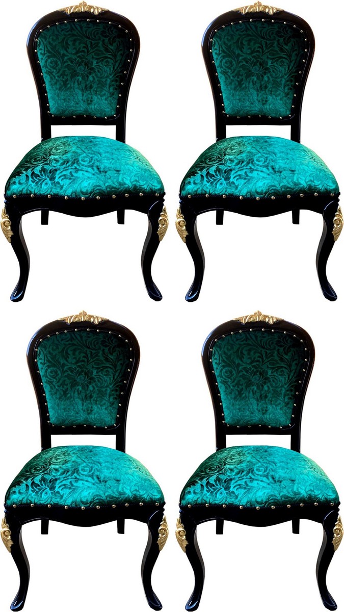 Pompöös by Luxus Barock Esszimmerstühle Grün Muster / Schwarz / Gold - Pompööse Barock Stühle designed by Harald Glööckler - 4 Esszimmerstühle - Barock Esszimmer Möbel