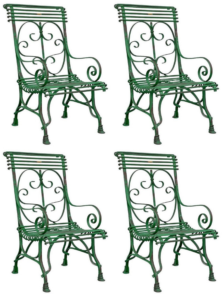 Jugendstil Gartenstuhl 4er Set Antik Grün 64 x 66 x H. 114 cm - Handgefertigte Schmiedeeisen Stühle mit Armlehnen - Nostalgische Garten & Terrassen Möbel