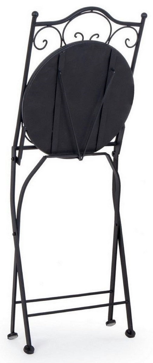 Jugendstil Gartenstuhl 4er Set Schwarz / Mehrfarbig 39 x 47 x H. 92 cm - Klappbare Stühle mit edlen Keramik Platten - Nostalgische Garten & Gastronomie Möbel