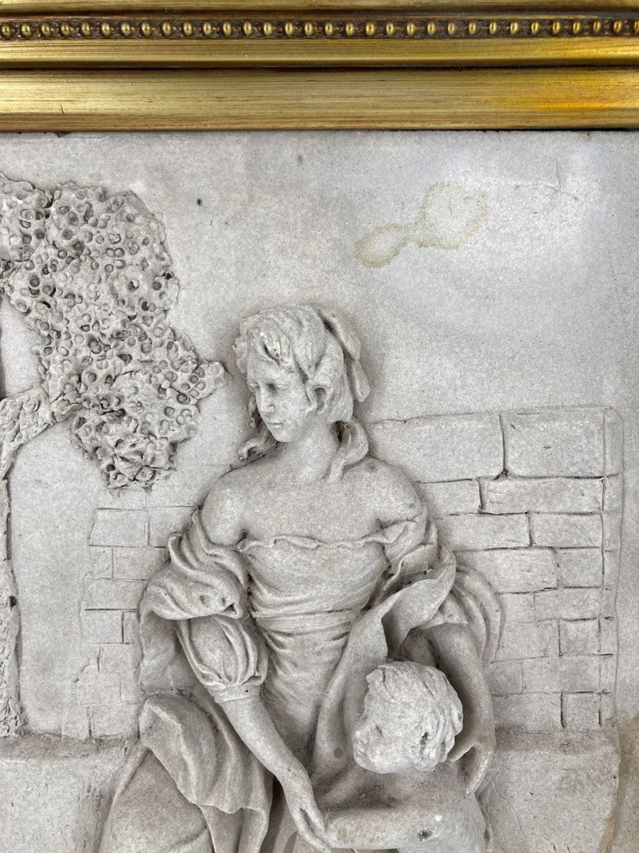 Barock Wandrelief Grau / Gold 44,5 x H. 55 cm - Antik Stil Wand Deko Stein Relief mit Prunk Rahmen - Deko Accessoires im Barockstil - Barock Wanddeko