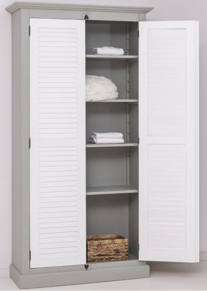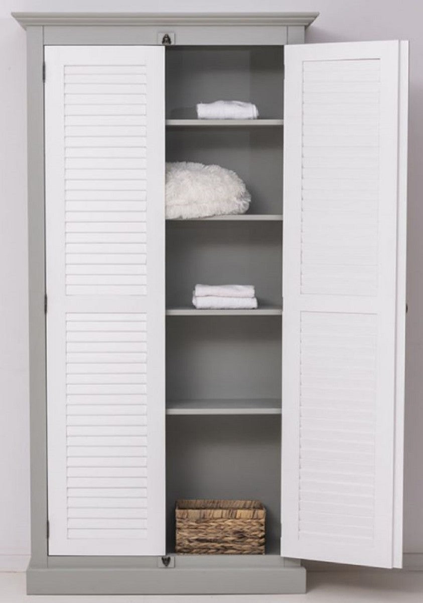 Landhausstil Kleiderschrank Grau / Weiß 109 x 40 x H. 210 cm - Massivholz Schlafzimmerschrank mit 2 Türen - Landhausstil Schlafzimmer Möbel - Massivholz Möbel im Landhausstil
