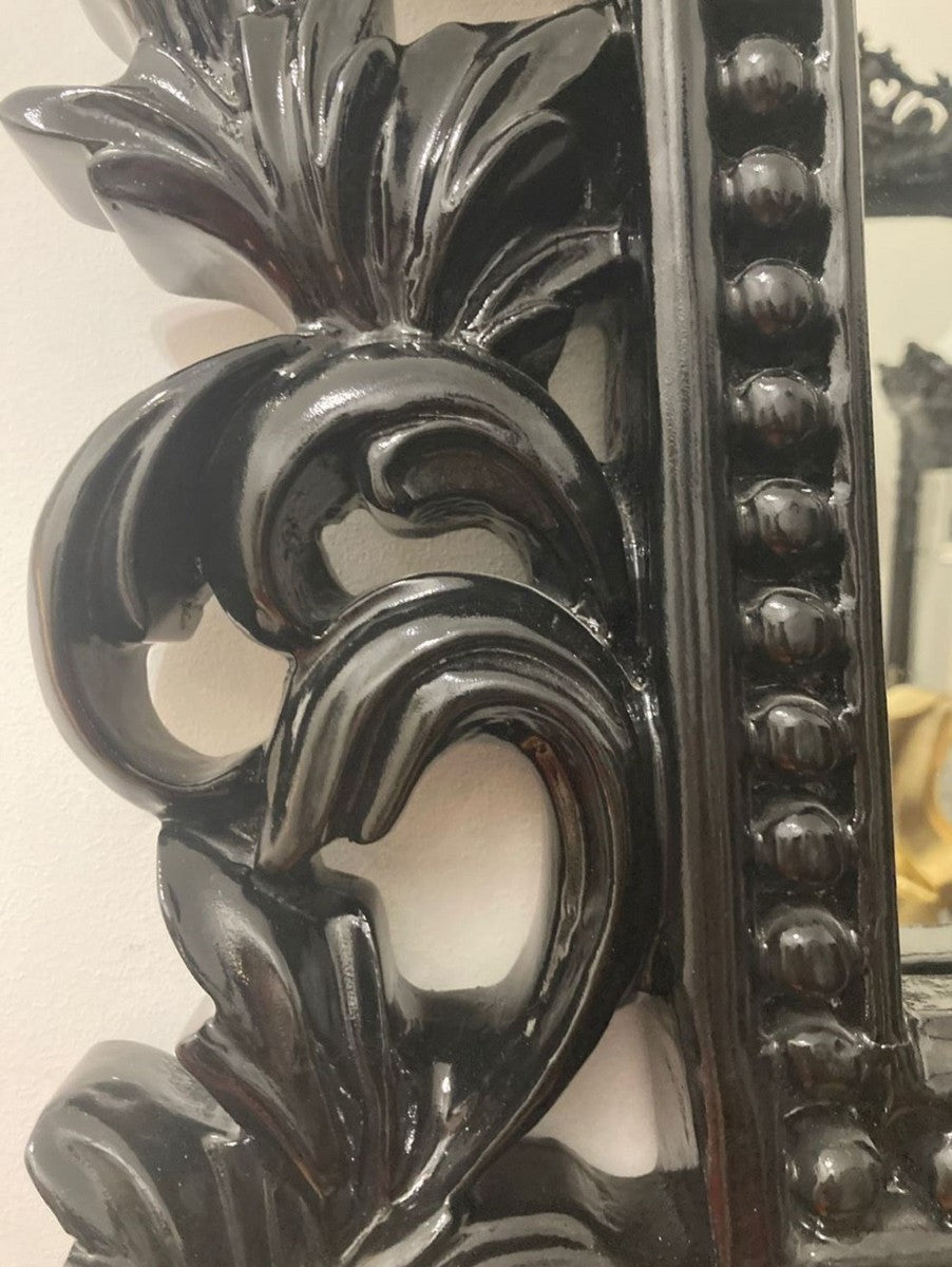 Barock Spiegel Schwarz - Prunkvoller Wandspiegel mit eleganten Verzierungen - Barock Garderoben Spiegel - Barockstil Wandspiegel - Barock Möbel - Edel & Prunkvoll