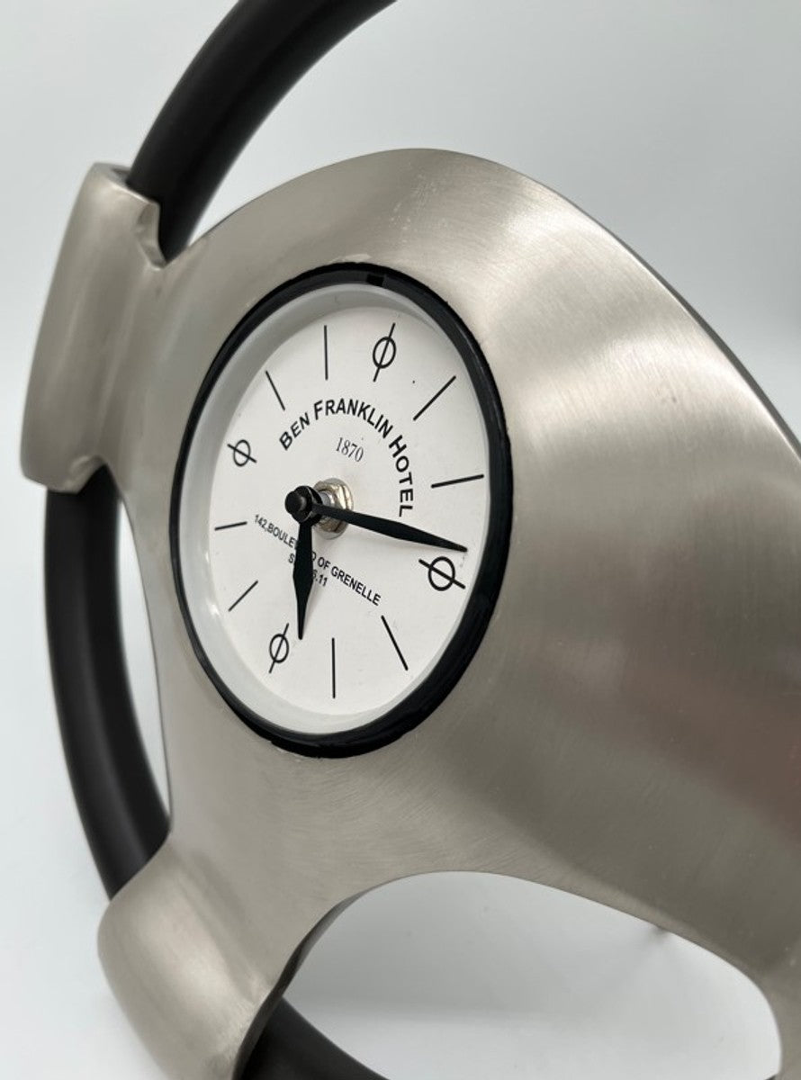 Designer Luxus Tischuhr Vintage Lenkrad mit Ständer - Edel & Prunkvoll - Tisch Uhr -1B Ware Frontglas fehlt
