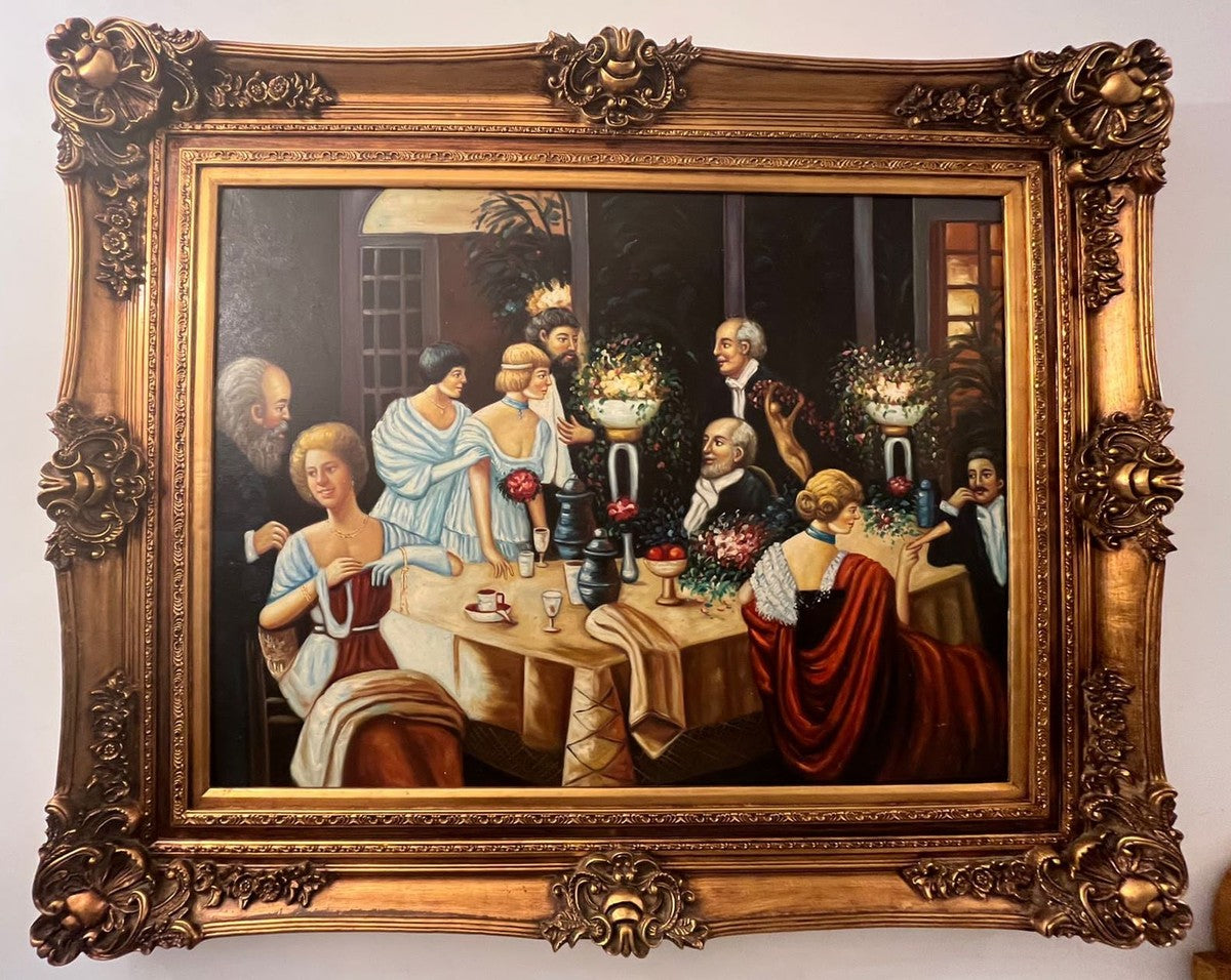 Barock Ölgemälde Mehrfarbig / Gold - Handgemaltes Antik Stil Gemälde mit Prunk Rahmen - Wand Deko im Barockstil - Barock Deko Accessoires - Barock Interior - Barock Möbel