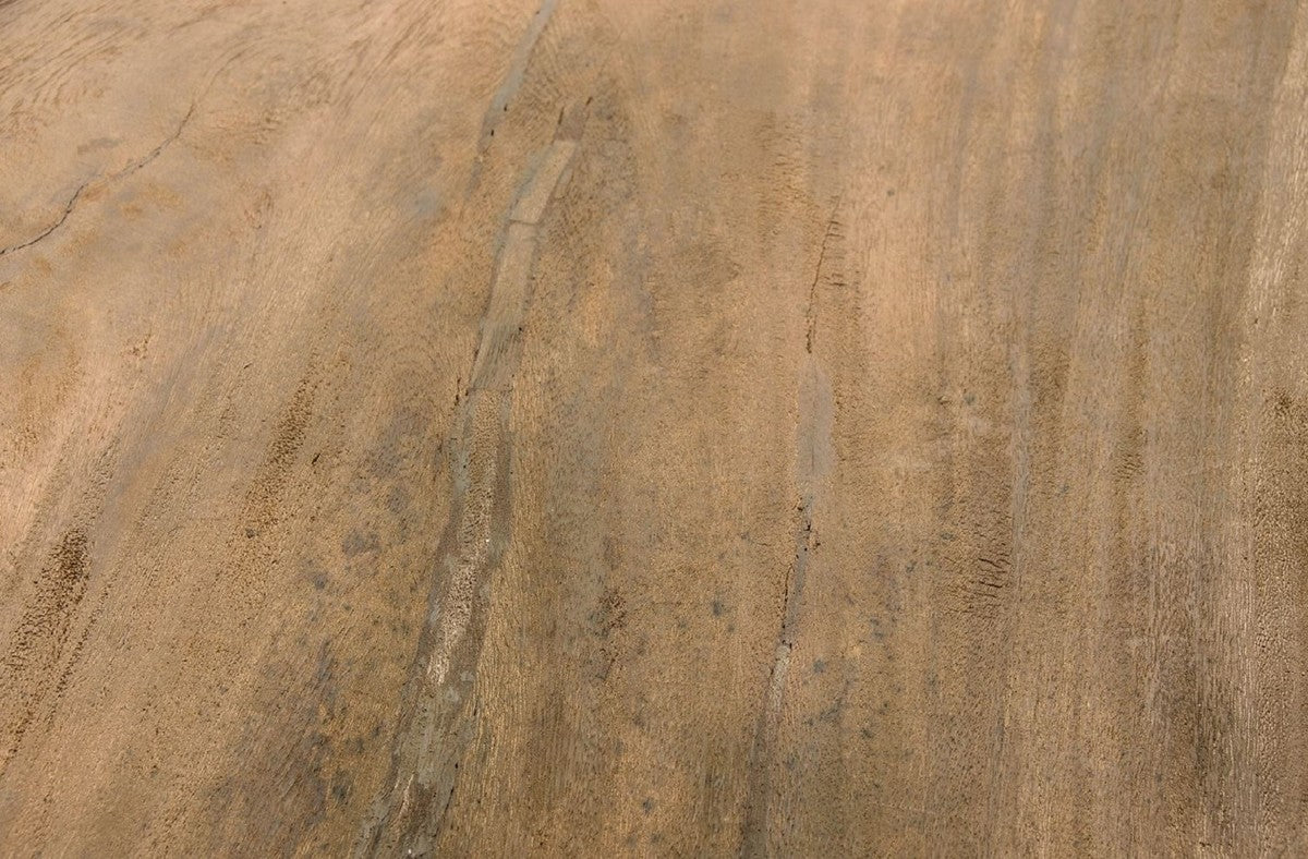 Massiver Esstisch in authentisch rustikaler Optik mit Rissen und Ästen