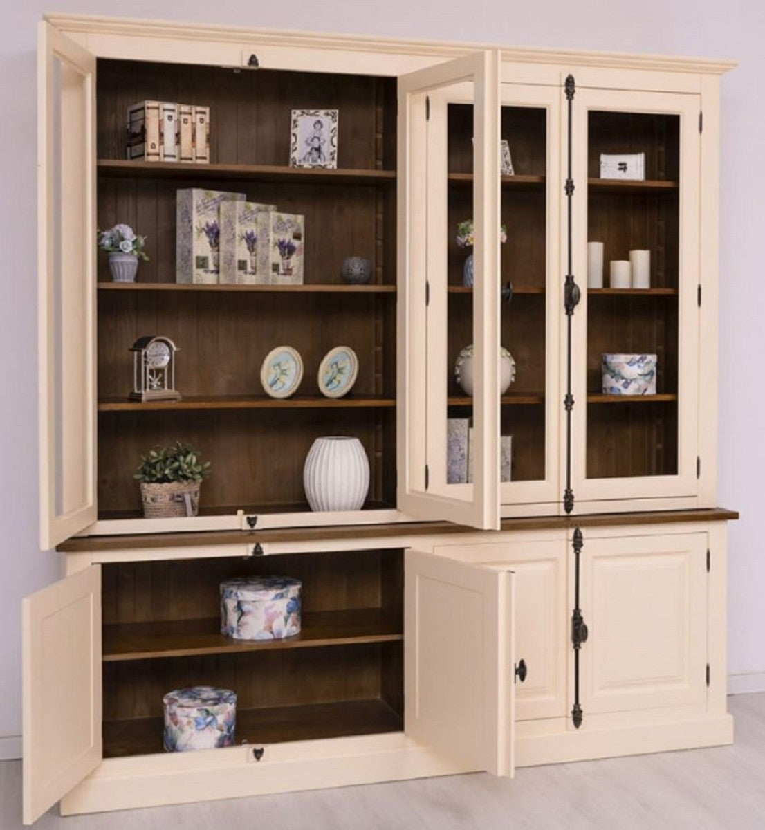 Landhausstil Esszimmerschrank Creme / Braun 223 x 50 x H. 228 cm - Massivholz Küchenschrank - Esszimmer Möbel im Landhausstil - Landhausstil Esszimmer Einrichtung