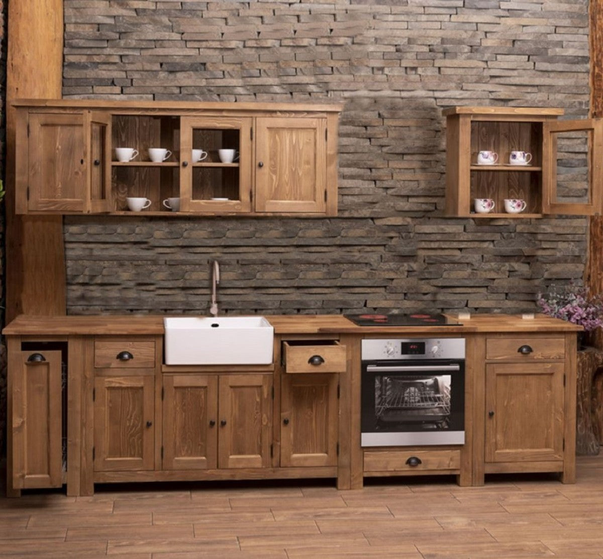 Landhausstil Einbauküche Braun 343 x 65 x H. 90 cm - Massivholz Küchenzeile - Esszimmer Möbel im Landhausstil - Landhausstil Massivholz Einbauküchen