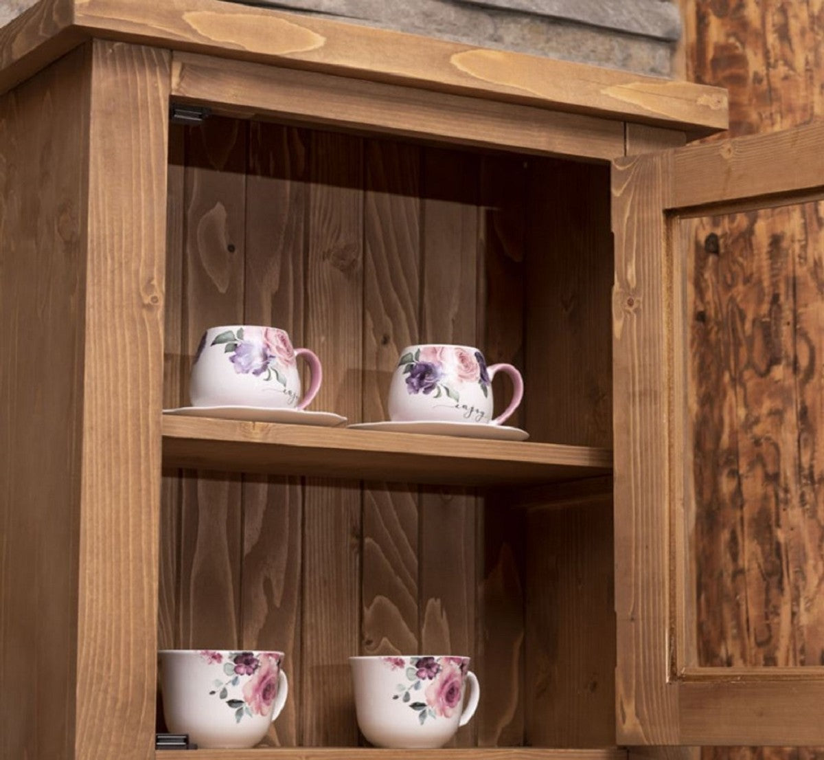 Material: massives Kiefernholz, Eichenholz, Metall, Glas