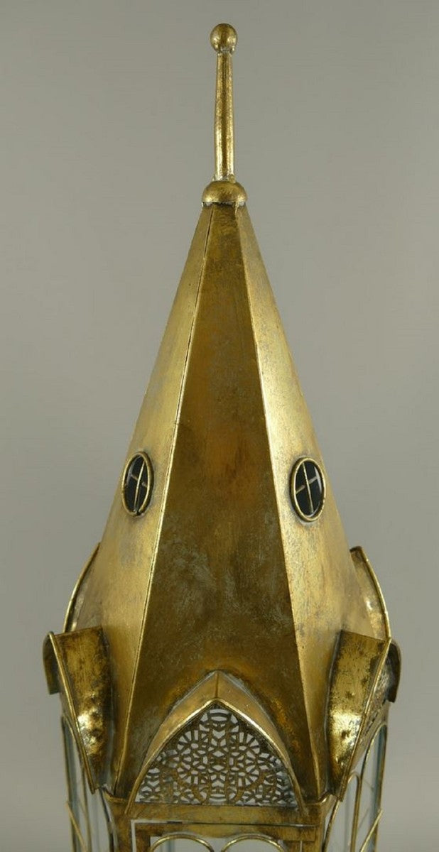 Jugendstil Laterne Antik Gold 30 x 30 x H. 90 cm - Deko Metall Laterne im Kirchturm Design - Wohnzimmer Deko - Garten Deko