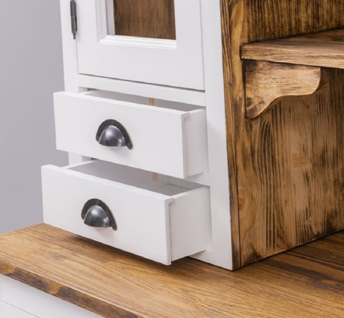 Landhausstil Esszimmerschrank Weiß / Braun 137 x 50 x H. 197 cm - Massivholz Küchenschrank - Esszimmer Möbel im Landhausstil - Landhausstil Esszimmer Einrichtung