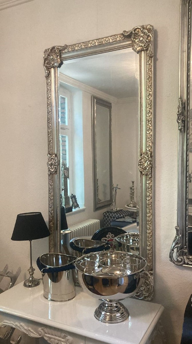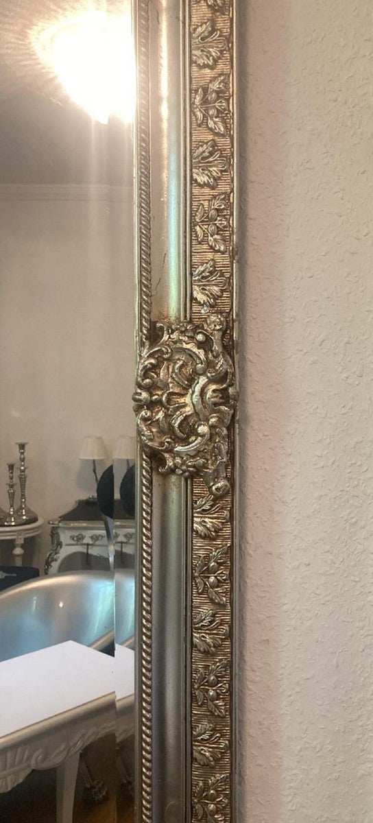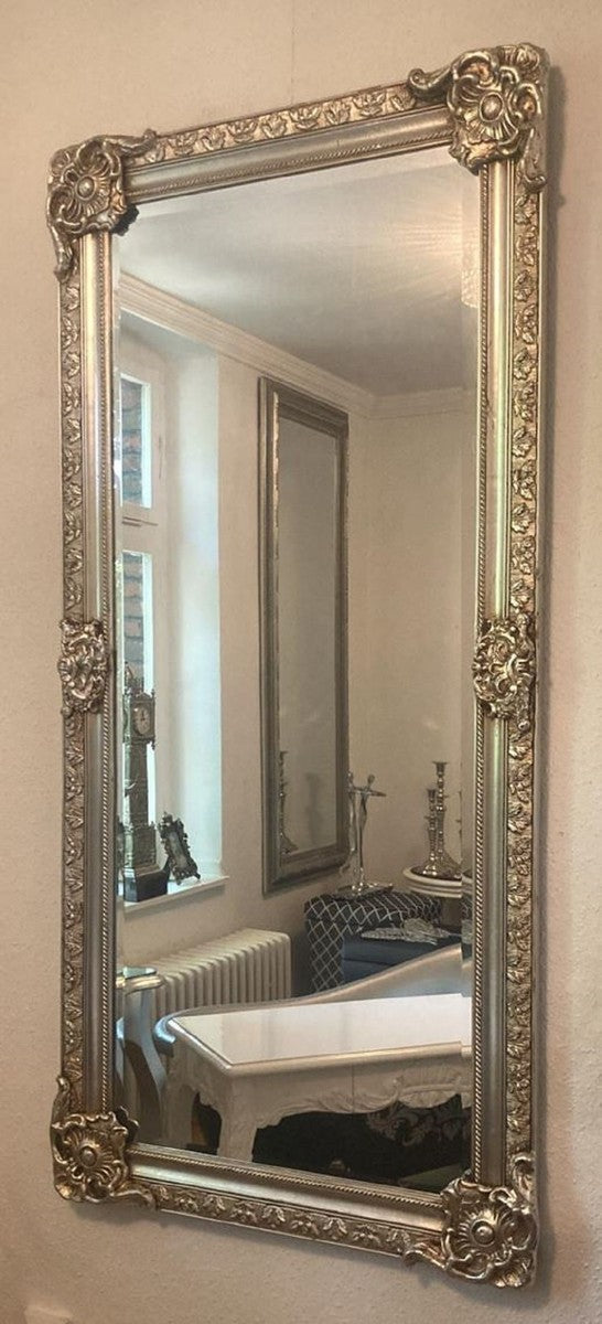Barock Spiegel Silber - Rechteckiger Wandspiegel im Barockstil - Handgefertigter Barock Garderoben Spiegel - Prunkvolle Barock Möbel - Barock Interior