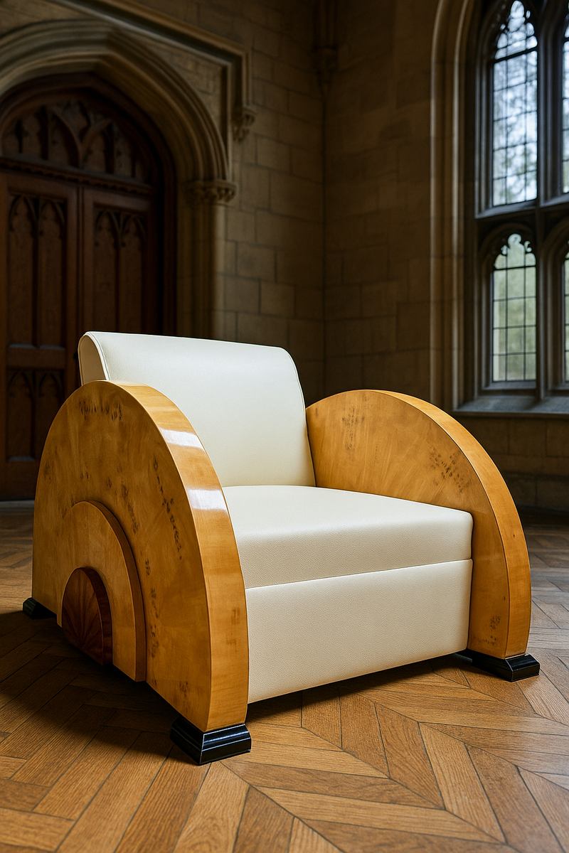 Material: Wurzelholz, Mahagoni Holz, Metall, Polyesterschaum, Leder