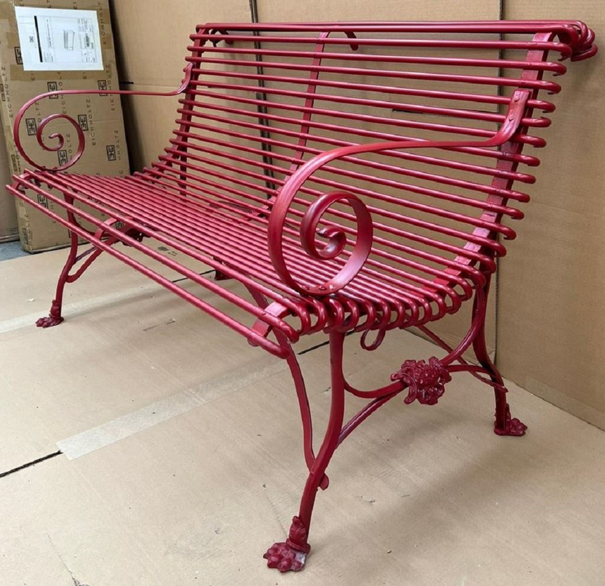 Jugendstil Gartenbank Rot 120 x 66 x H. 80 cm - Schmiedeeisen Garten Sitzbank - Schmiedeeisen Garten Möbel - Barock & Jugendstil Garten Möbel