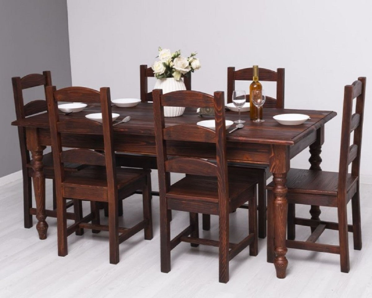 Landhausstil Esszimmer Möbel Set Dunkelbraun - 1 Landhausstil Esstisch & 6 Landhausstil Esszimmerstühle - Massivholz Esszimmer Möbel - Landhausstil Esszimmer Möbel