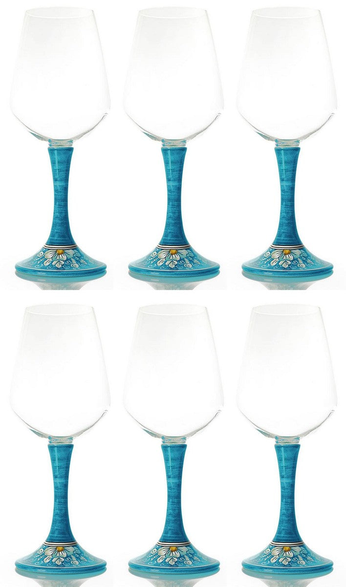 Luxus Weinglas 6er Set Hellblau / Mehrfarbig H. 23,5 cm - Handgefertigte & handbemalte Weingläser - Hotel & Restaurant Accessoires - Luxus Qualität - Made in Italy
