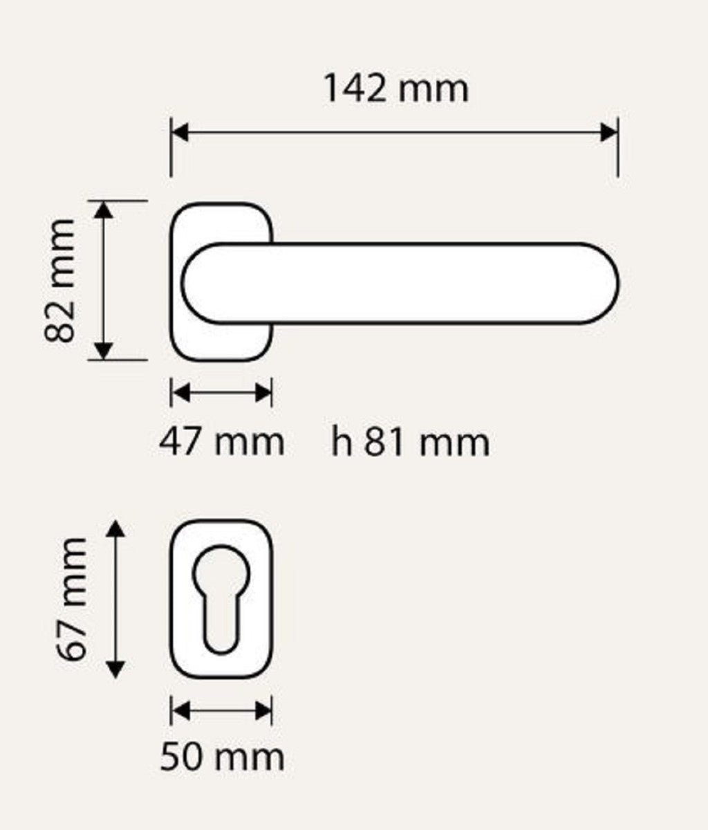 Abmessungen Türgriffe: 142 x H. 82 mm