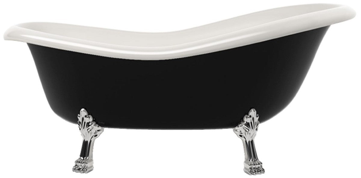 Jugendstil Badewanne Schwarz / Weiß / Silber 168 cm - Freistehende Retro Stil Badewanne