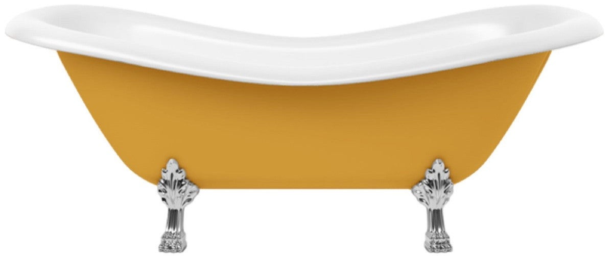 Jugendstil Badewanne Gelb / Weiß / Silber 188 cm - Freistehende Retro Stil Badewanne
