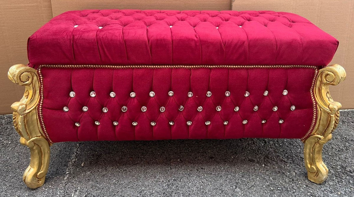 Barock Sitzbank - Truhe mit Glitzersteinen Bordeauxrot / Gold - Barock Möbel