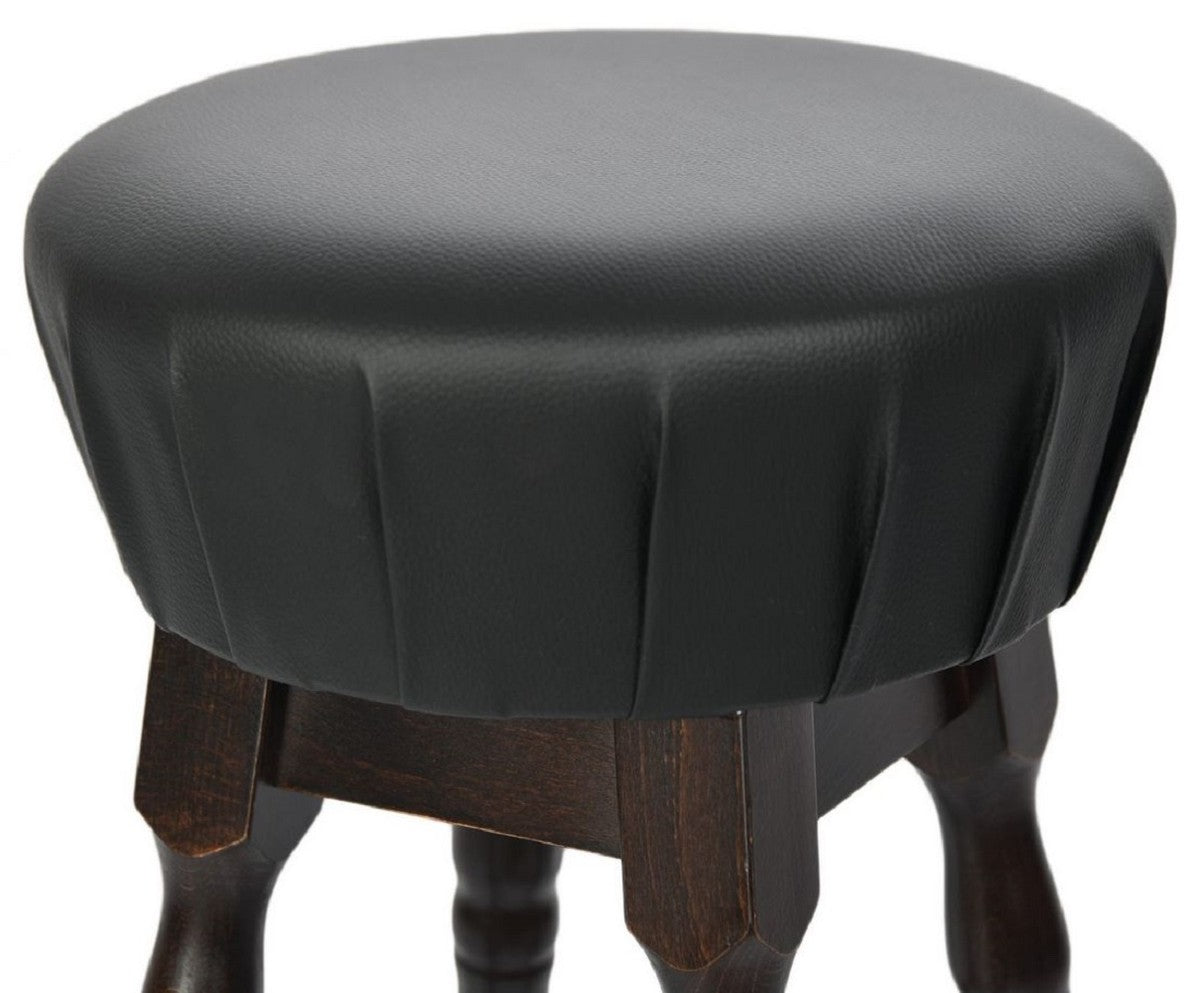 Jugendstil Barhocker Schwarz / Dunkelbraun H. 80 cm - Runder Kunstleder Barstuhl