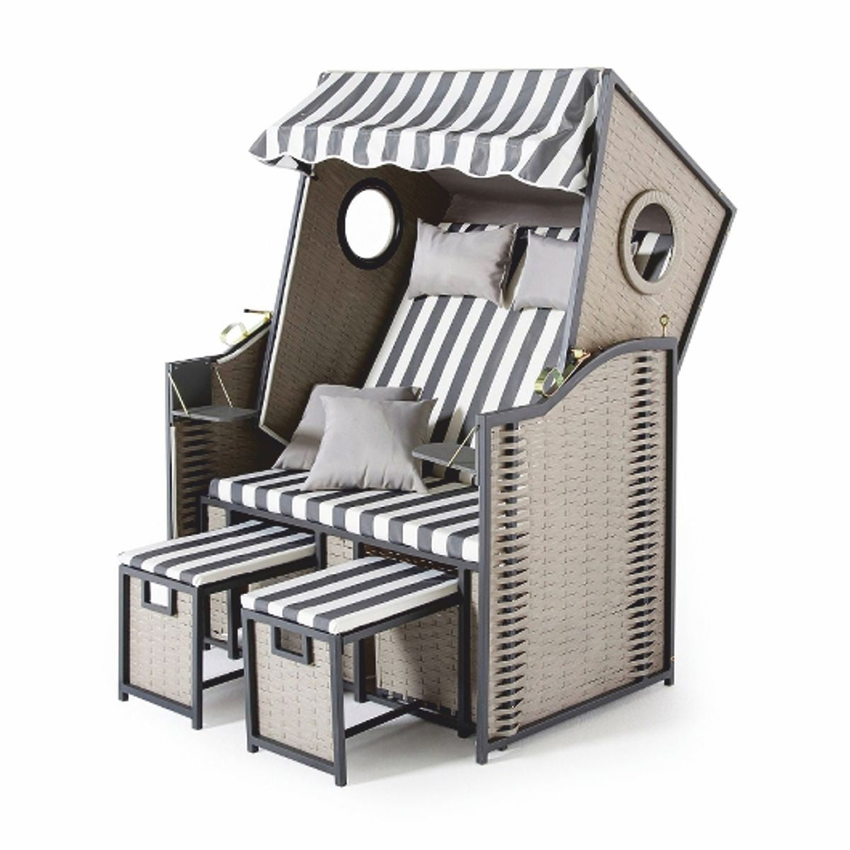 Strandkorb mit Dach Grau / Weiß 114 x 72 x H. 160 cm