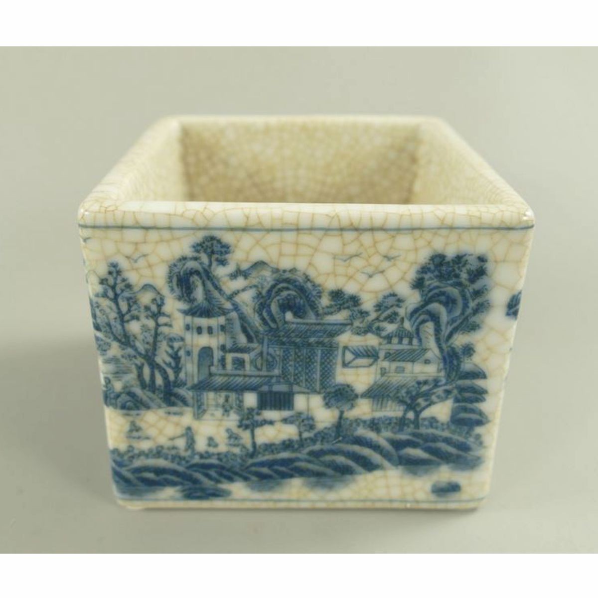 Barock Porzellan Zuckerdose mit Deckel Creme / Blau / Messing 10 x 10 x H. 13 cm