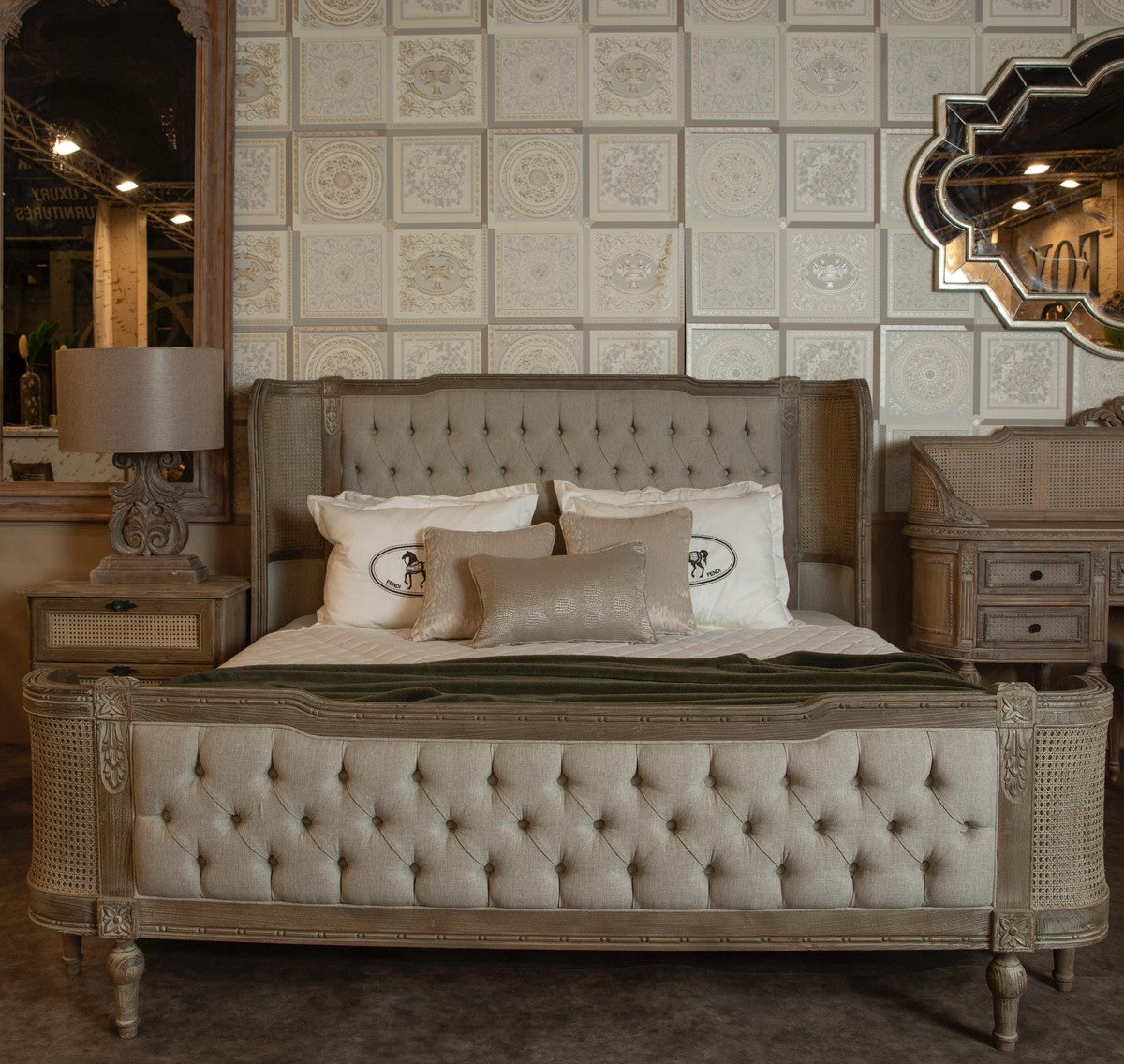 Pompöös by Luxus Barock Doppelbett Provence Grau / Braun 200 x 200 cm - designed by Harald Glööckler