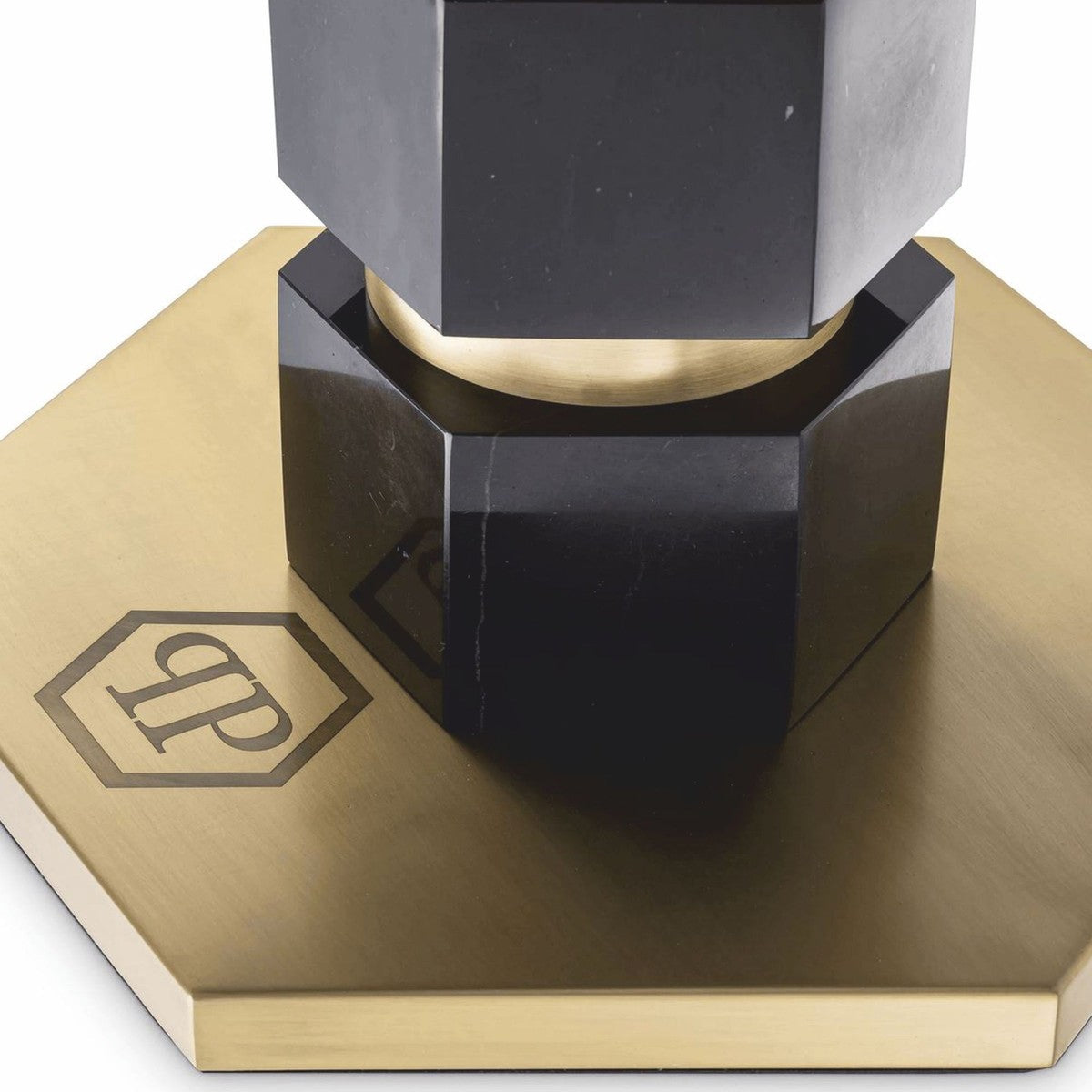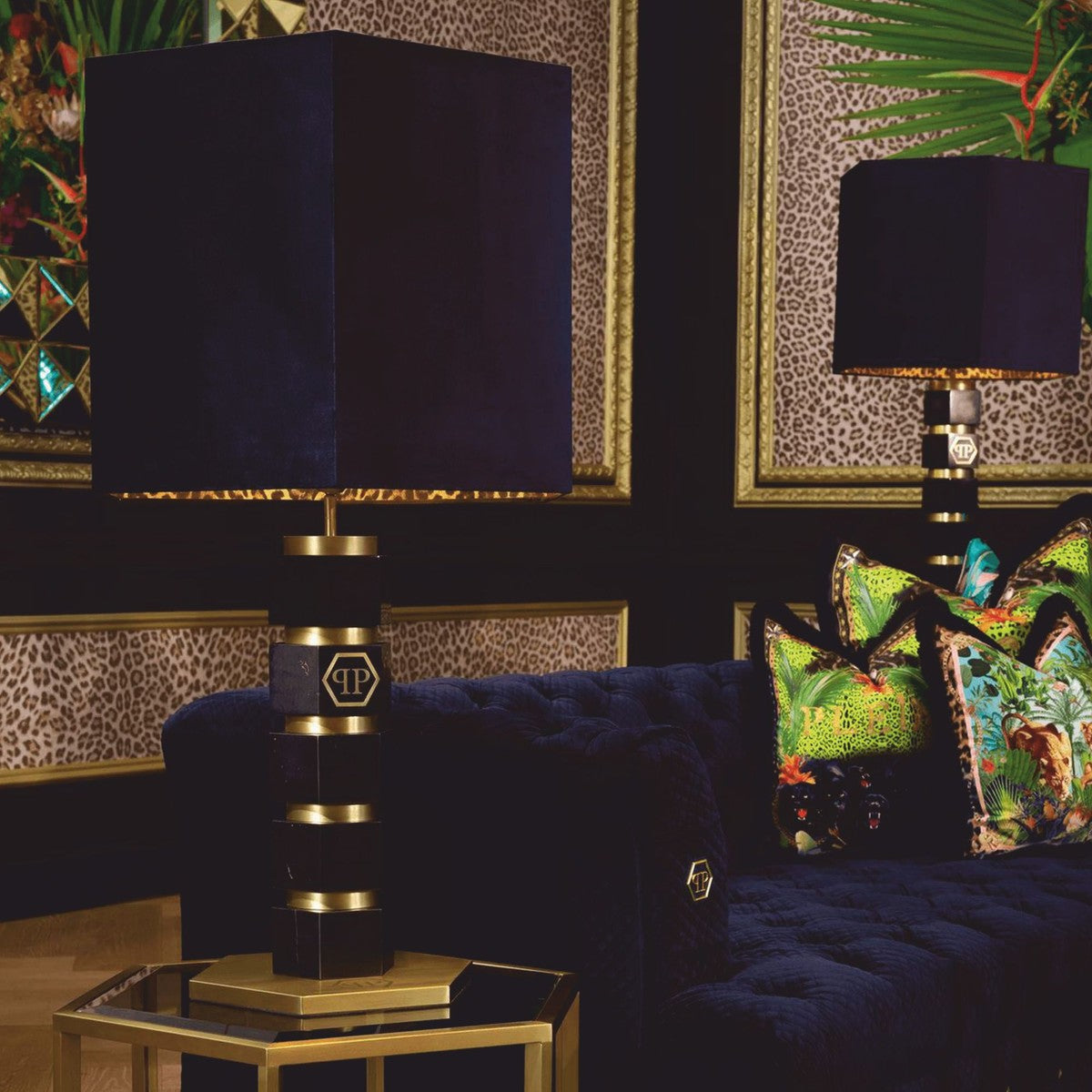 Philipp Plein Luxus Marmor Tischleuchte H. 76 cm Schwarz / Messing / Leopard - Luxus Qualität