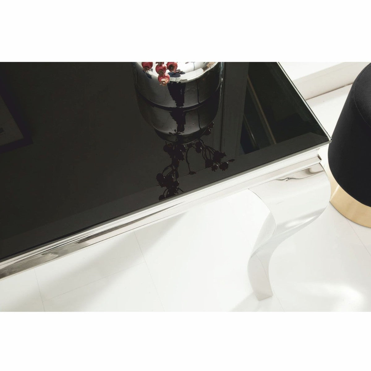 Barock Edelstahl Konsole mit Glasplatte Silber / Schwarz 145 cm