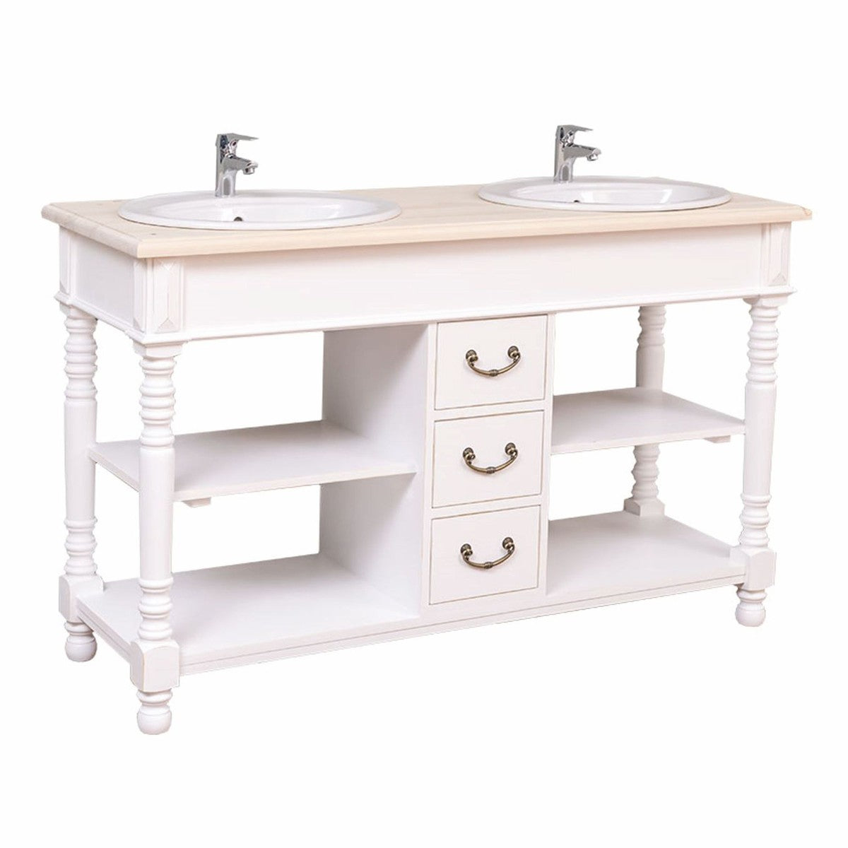 Mit dem Landhausstil-Doppelwaschtisch entscheiden Sie sich für ein hochwertiges Möbelstück, das rustikalen Charme, moderne Eleganz und praktische Funktionalität in vollendeter Form vereint.