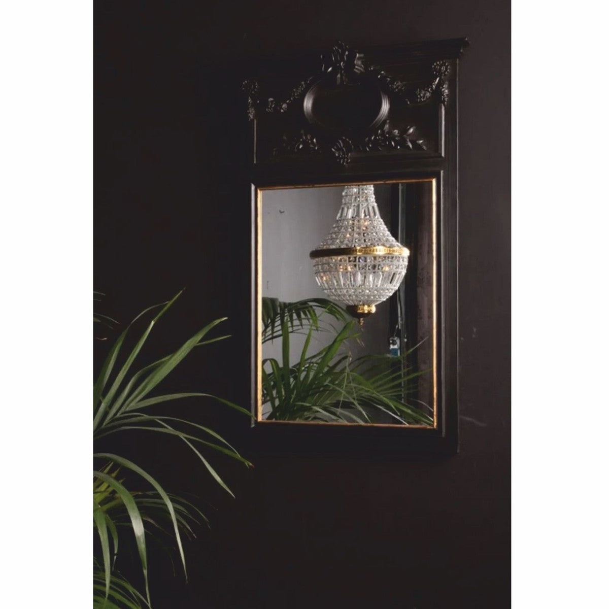 Die Kombination aus schwarzer Farbgebung und barocken Verzierungen schafft ein harmonisches Wechselspiel aus Zurückhaltung und dekorativer Finesse. Der Spiegel reflektiert nicht nur Licht und Raum, sondern auch ein Gefühl von kultivierter Ästhetik und formvollendeter Gestaltung.