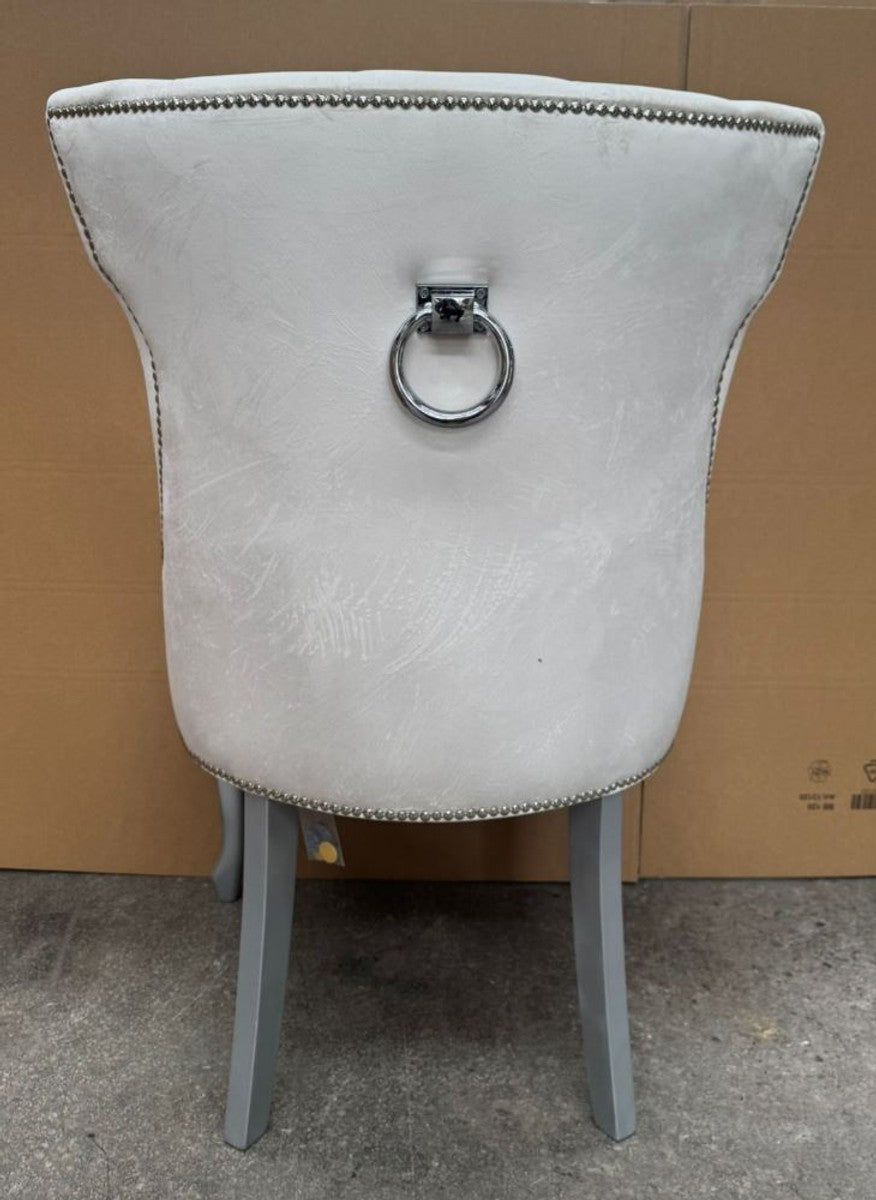Art Deco Esszimmer Stuhl Weiß / Silber / Grau H. 97 cm - Esszimmer Möbel
