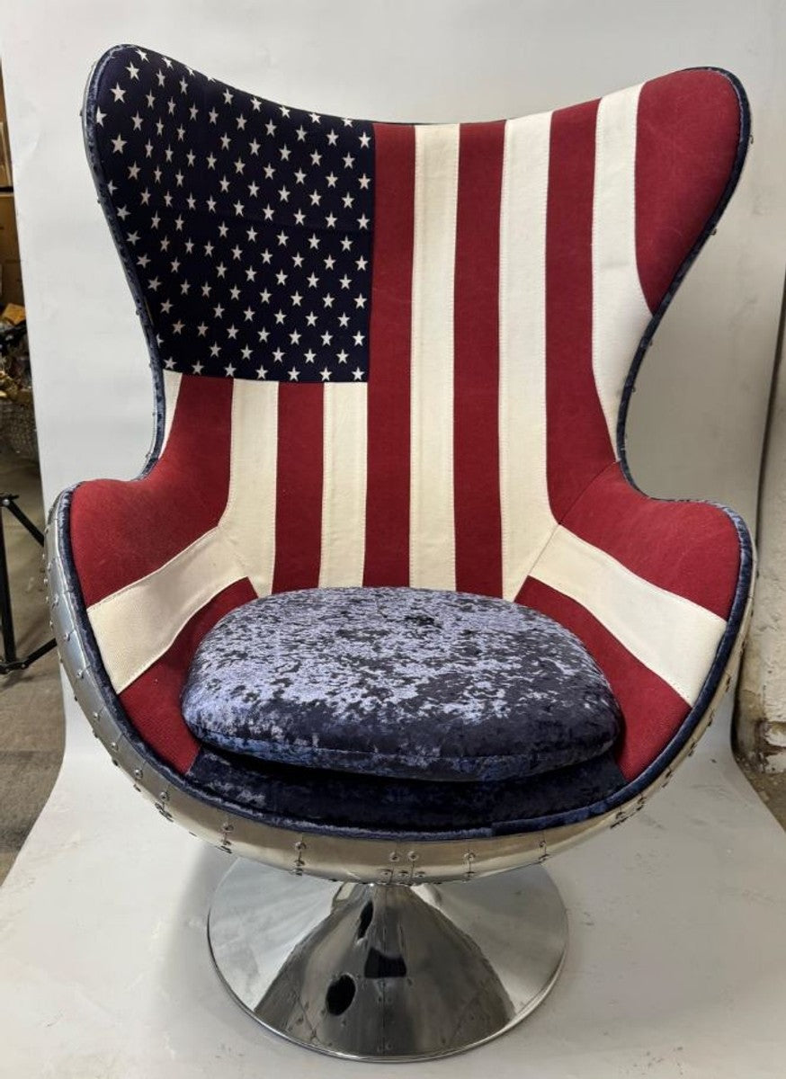 Aluminium Drehsessel Silber / USA Design - Aluminium Flugzeug Flieger Möbel