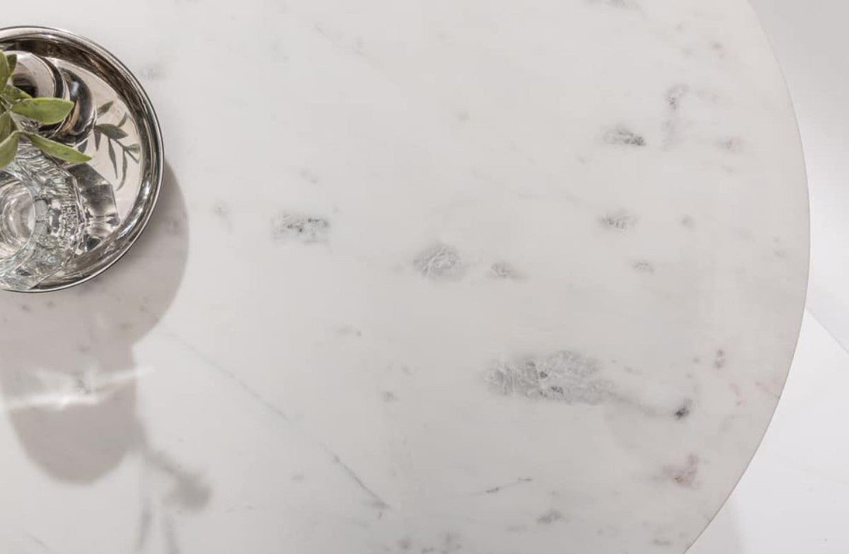 Couchtisch mit Marmorplatte Weiß / Silber Ø 62 cm - Wohnzimmer Möbel