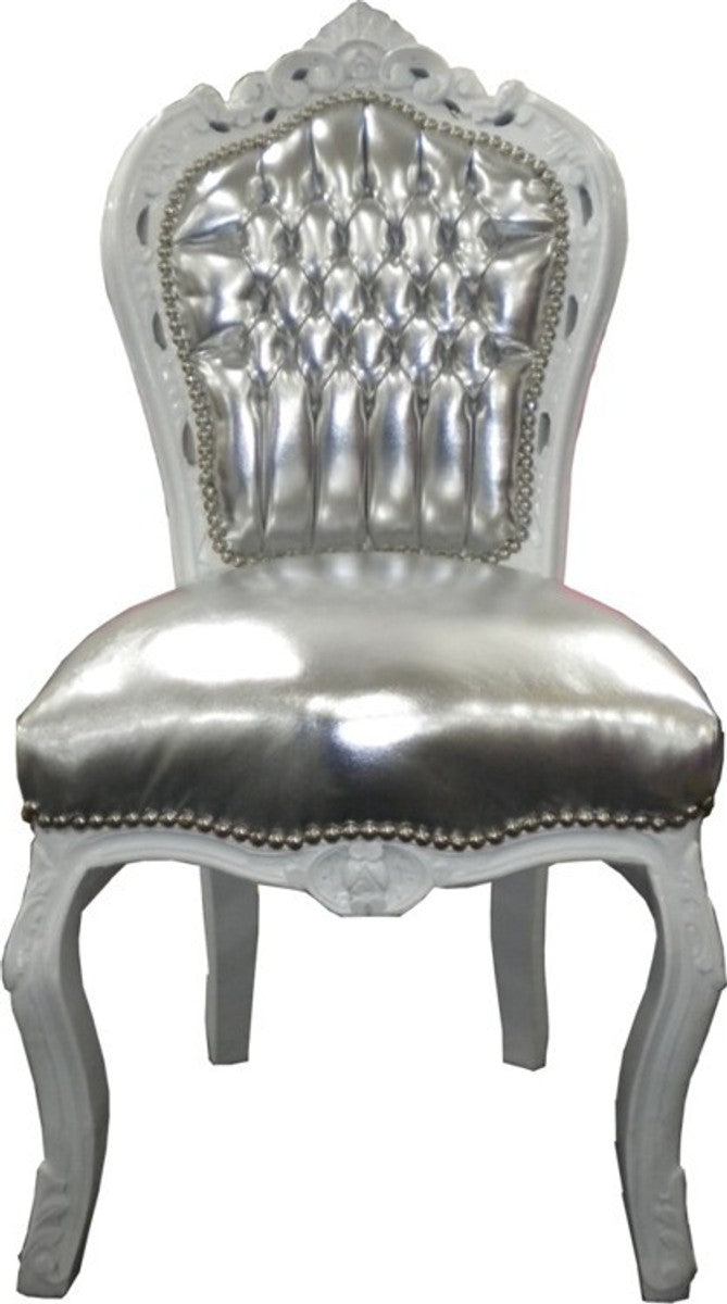 Barock Esszimmer Stuhl Silber Lederoptik / Weiß